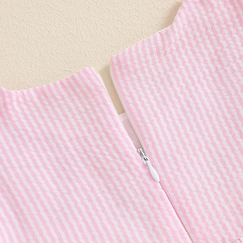 Girl's Dress Ruffle Sleeveless Round Neck Bunny Embroidered Loose Dress Vacation Dress