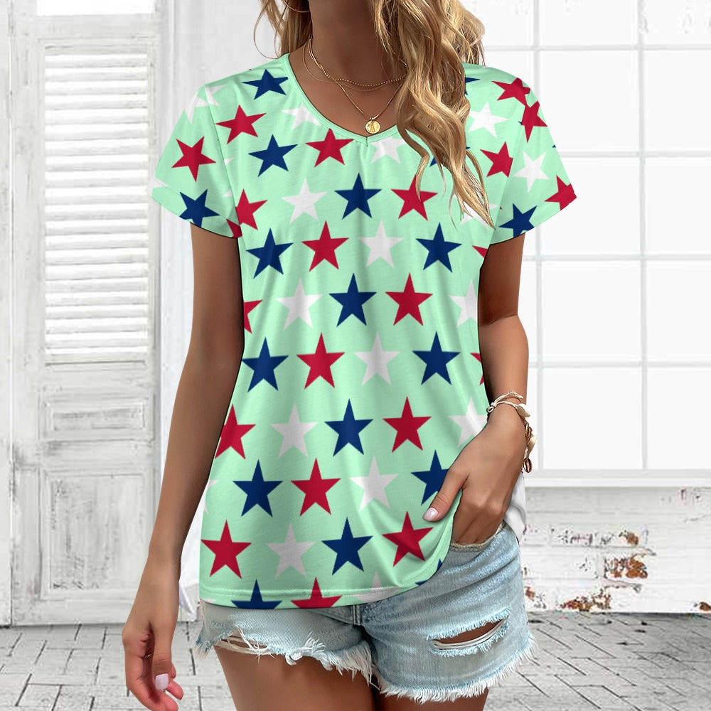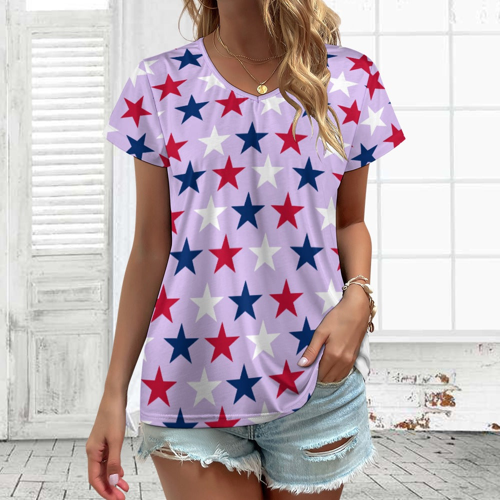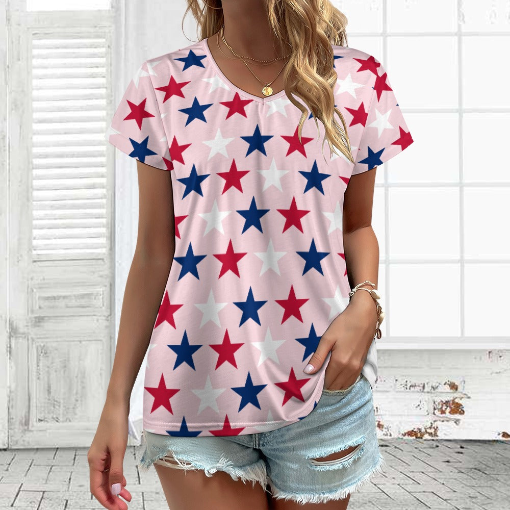 Women’s 4th of July V-neck Short Sleeve T-shirts